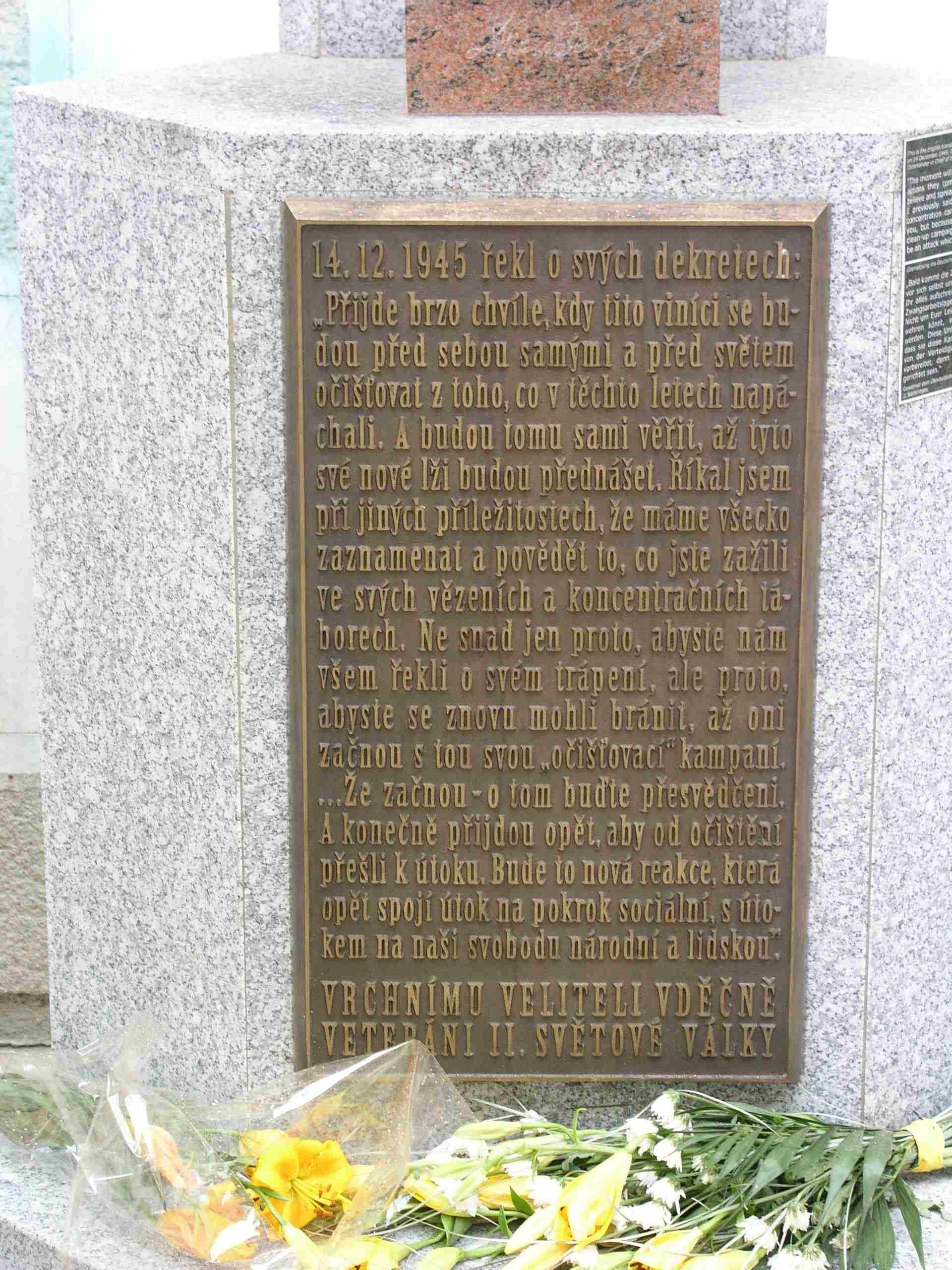 Ze soklu pod bustou Edvarda Beneše v Českém Krumlově