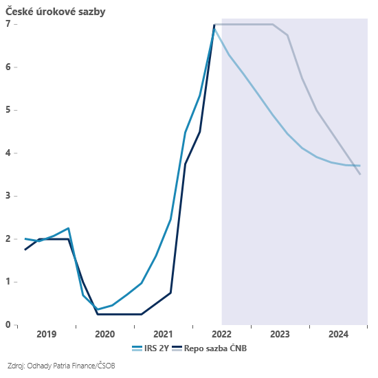 Vyloučené ovšem není, že v takovém případě dříve nebo později může ČNB řešit problém s výraznějšími prodejními tlaky na české koruně. Její obrana se zužujícím pozitivním úrokovým diferenciálem jak vůči euru, tak dolaru může ČNB prodražovat. V základním scénáři (mělká recese) nepočítáme s tím, že sázky proti koruně budou natolik výrazné, aby přesvědčily holubičí ČNB v nejbližších měsících k dalšímu zvýšení sazeb. Pokud by ale došlo na alternativní scénář (hluboká recese spojená s výrazným nedostatkem plynu během zimy), bude ČNB podle našeho názoru nucena stabilizovat český finanční systém (zabránit masivnímu odlivu kapitálu) dalším růstem úrokových sazeb… a to nehledě na výrazně hlubší propad českého hospodářství.