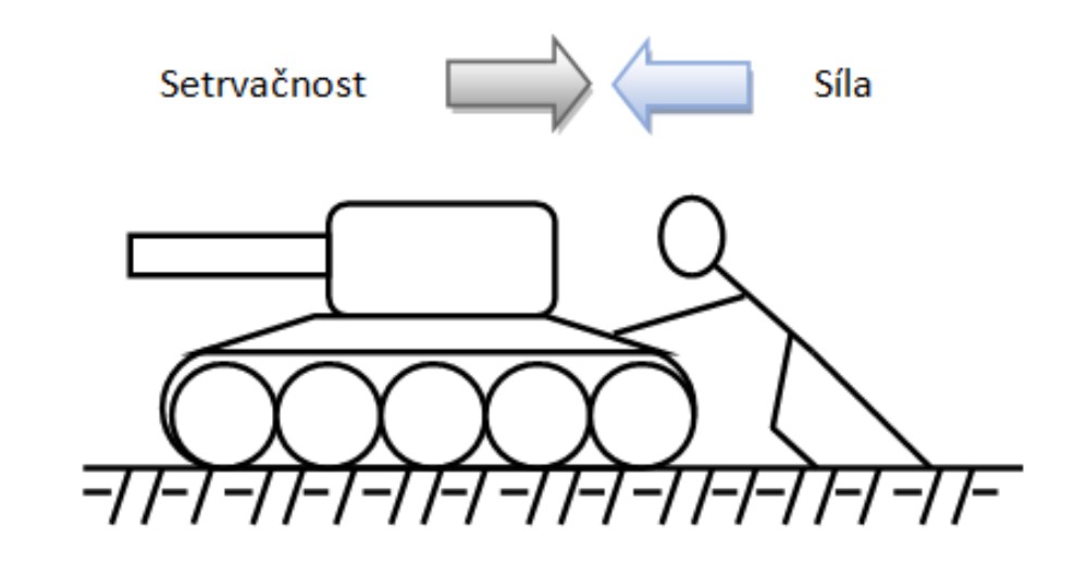 Změna nastala použitím vznětového motoru při tlačení pancíře s kanónem a osádkou. Pancíř, osádka a kanón mají svou setrvačnost (odpor tělesa vůči změně jeho rychlosti). Proti nim působí síla tlačící pancíř s kanonem kupředu. Viz. obr. č. 1.