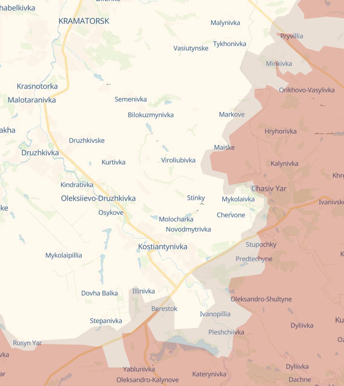 Hrozba z jižního směru přetrvává. Ukrajinské pozice mezi Konstantinovkou a nádrží Kleban Byk zůstávají pod tlakem. Pokud budou ruské jednotky dále postupovat, ukrajinské ozbrojené síly mohou být nuceny stáhnout se do centrální části Konstantinovky čímž riskují částečné obklíčení.