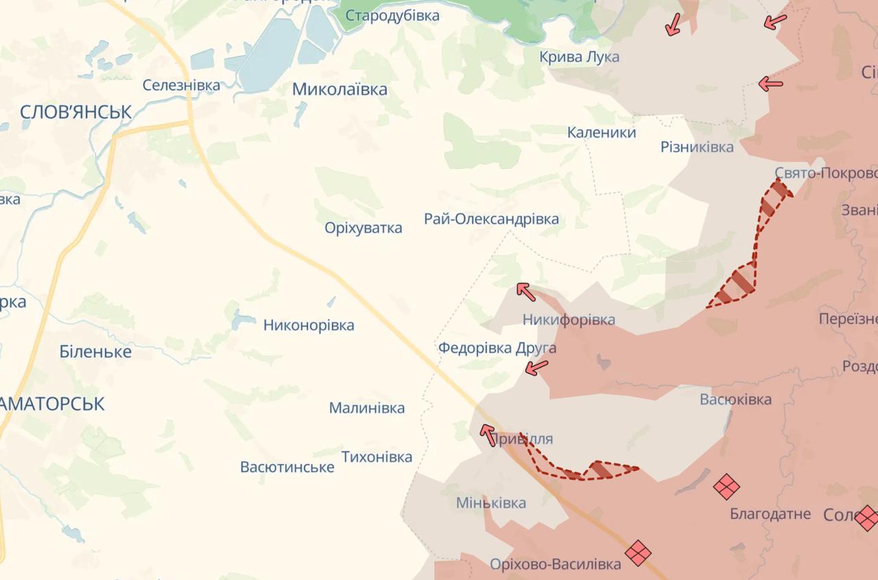 Ruská armáda postoupila poblíž Reznikovky, Pazena a Privolje ve směru na Slavjansk, informuje DeepState.